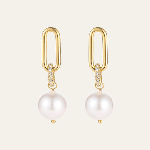 The Isola Pearl Drop Earrings are a study in refined beauty. Featuring a sleek elongated gold link, accented with delicate crystal detailing, each earring is finished with a luminous pearl that gently sways with every movement. The harmonious contrast of clean lines and soft lustre creates a timeless piece with a contemporary edge.