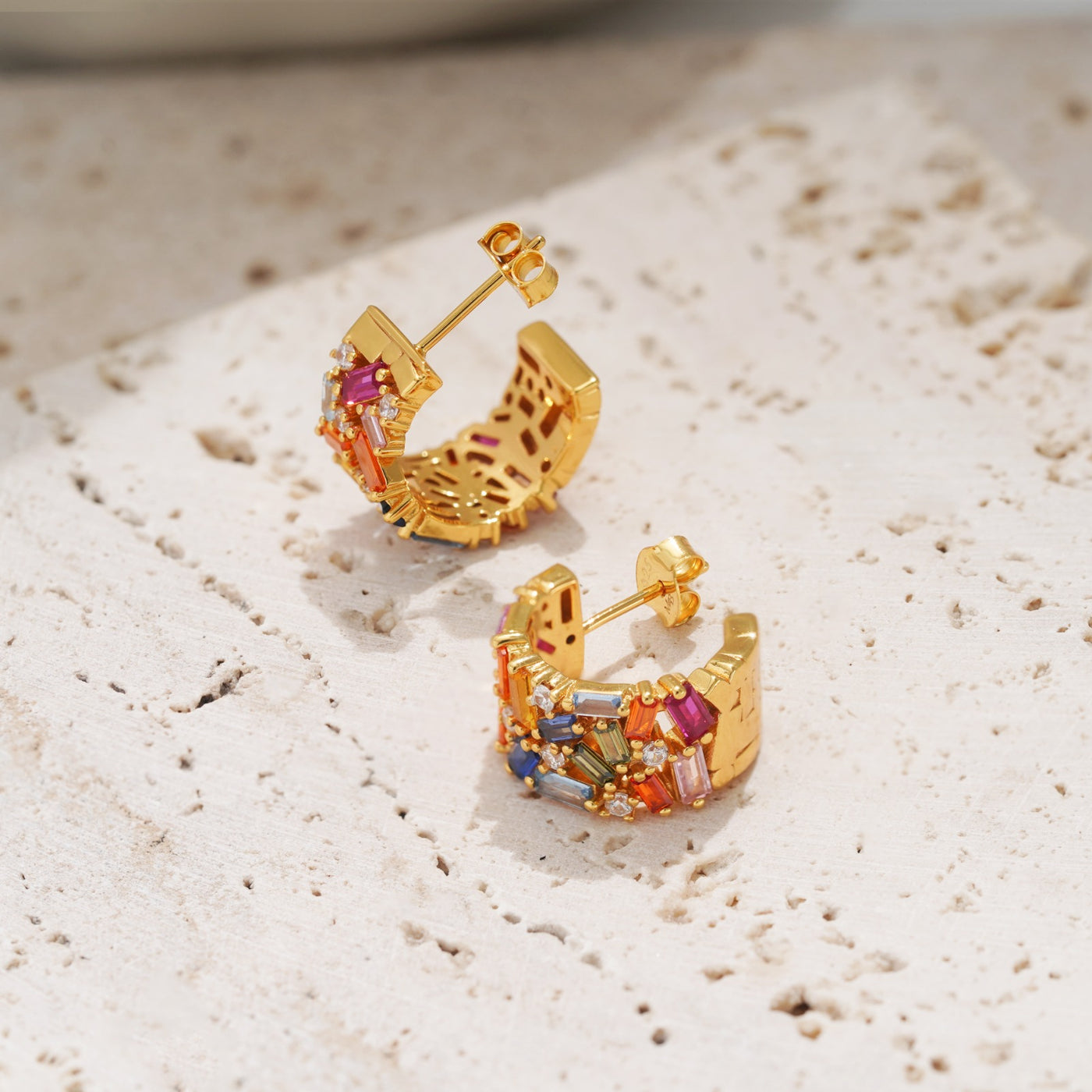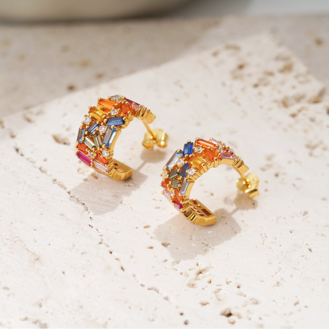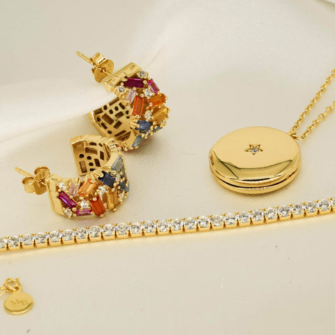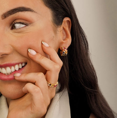 Embodying a captivating fusion of elegance and uniqueness, the meticulously embedded multicoloured zirconia stones evoke a mesmerising play of light, reflecting a kaleidoscope of hues with every movement. Each stone is carefully selected to ensure a harmonious blend of colours, radiating an aura of sophistication.