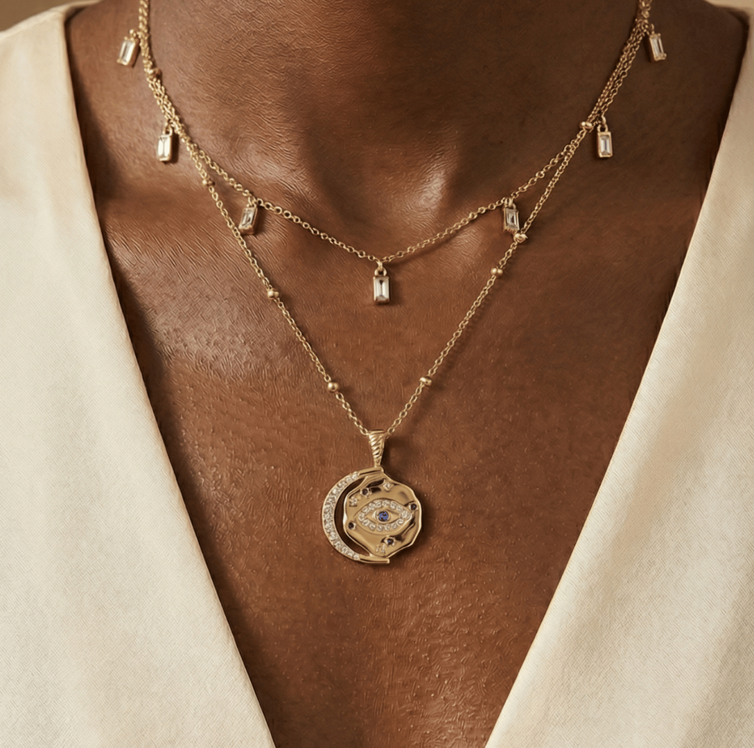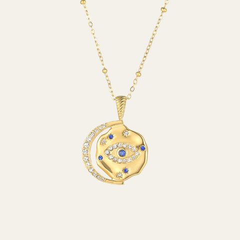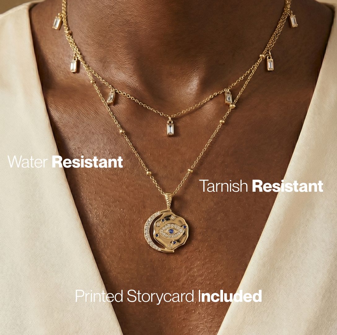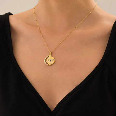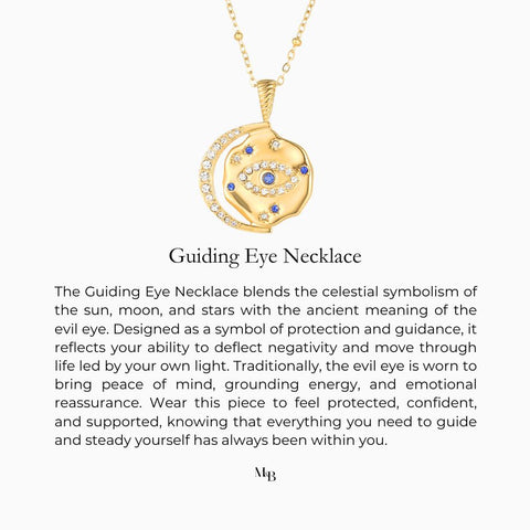Blending celestial symbolism with the ancient meaning of the evil eye, the Guiding Eye Necklace is designed as a symbol of protection and self-trust. Crafted in the same organic silhouette as our bestselling My Sun, Moon & Stars 3.0, this necklace is a powerful piece of armour. At its centre sits the guiding eye, framed by scattered zirconia stones that catch the light like distant stars.