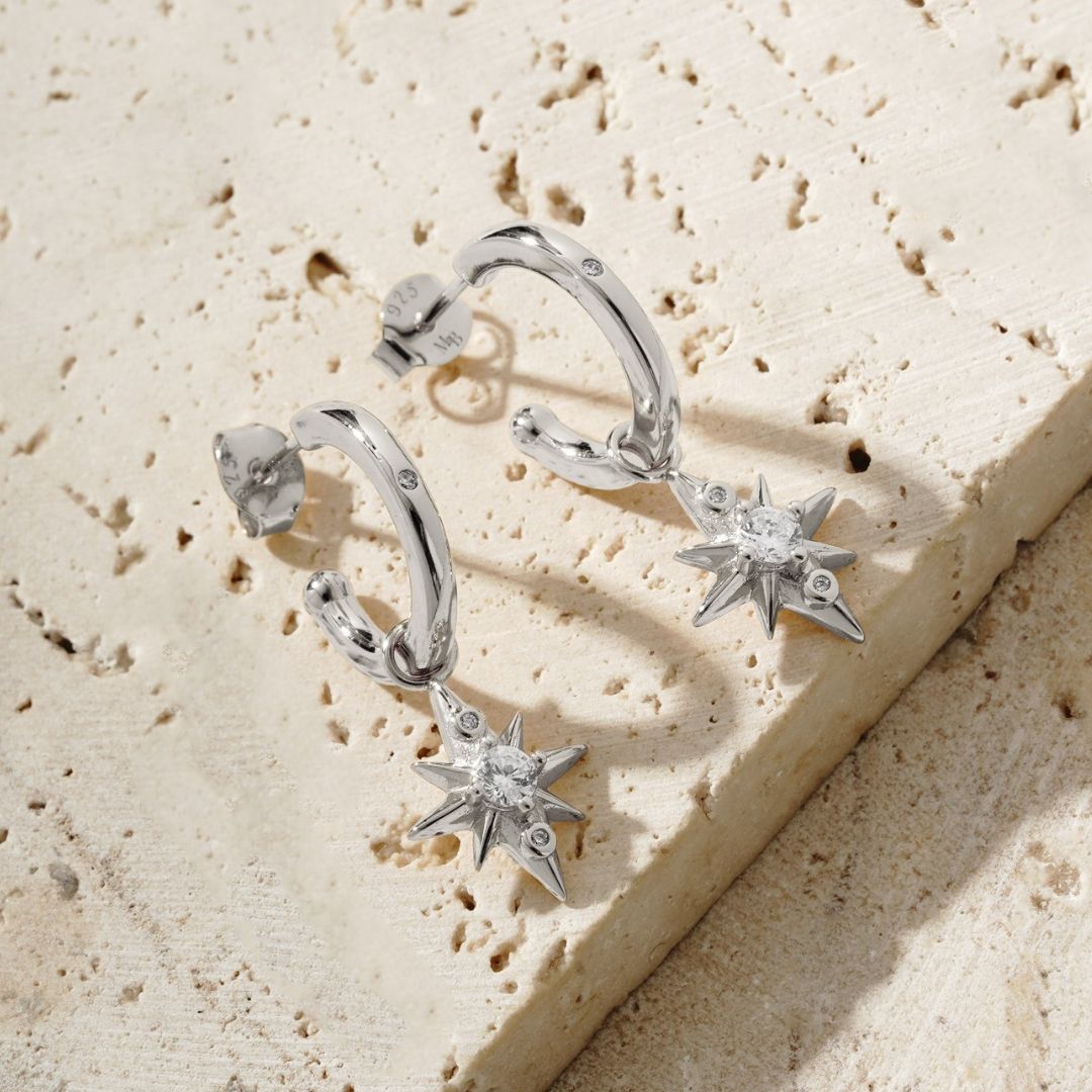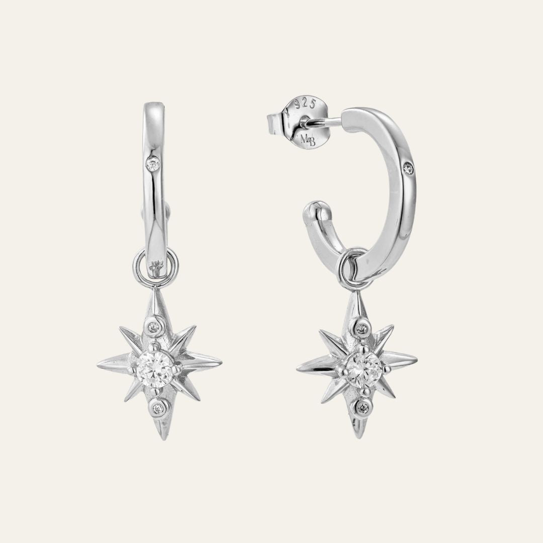 The Star Drop Earrings feature our signature star - bold, radiant, and unmistakably Mettle & Bloom - now suspended from a sleek, minimalist hoop. A single zirconia stone in the hoop adds a touch of sparkle, like a lone star twinkling in the night sky. The hoops can be worn solo or with the star charm attached, making these 2-in-1 earrings versatile and perfect for styling.